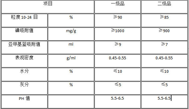 椰殼凈水炭采用進(jìn)口椰殼碳化料為原料,采用物理蒸汽活化法生產(chǎn)。